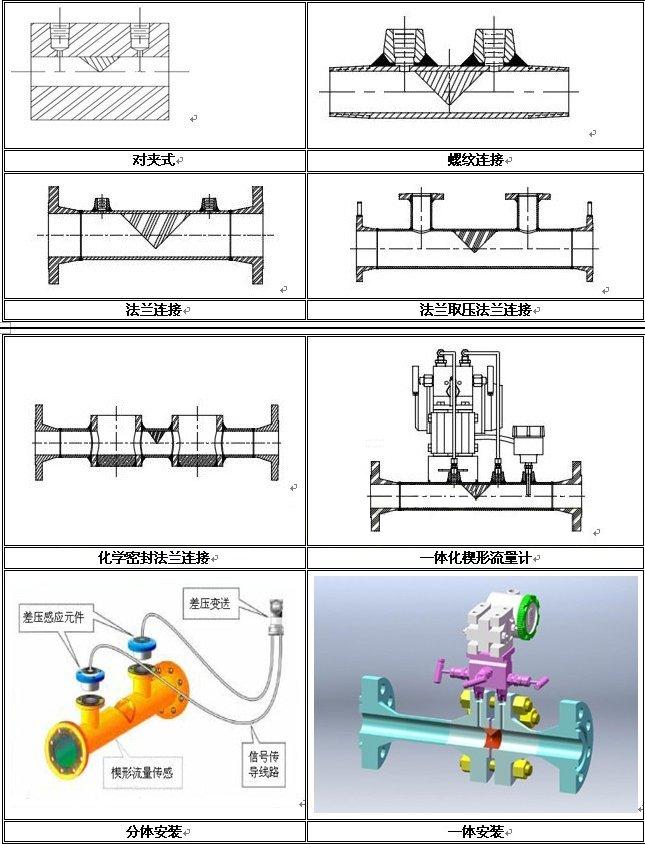 楔形流量計按其組裝方式分為一體型和分離型,按其連接方式分為法蘭連接、焊接連接、螺紋連接及對夾式連接,按其取壓方式分為普通取壓、法蘭密封取壓等結(jié)構。