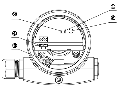 ①密度開關(guān) ② 高低位模式 ③ 指示燈 ④ 接線端子 ⑤ 接地端子