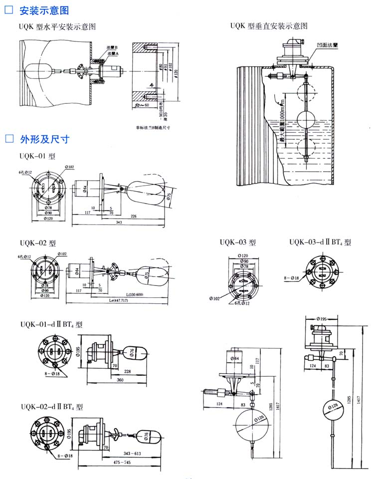 UQK-01、UQK-02、UQK-03型浮球液位控制器適用于對(duì)各種容器內(nèi)液體的液體控制,當(dāng)液位到達(dá)上、下切換值時(shí),控制器觸點(diǎn)發(fā)出通斷開關(guān)式信號(hào)。產(chǎn)品系列分防爆或非防爆兩大類,防爆型能用于易燃和易 爆介質(zhì)為1.2級(jí)及A、B、C組承壓容器的液位控制??刂破鞑贿m用于對(duì)黃銅、不銹鋼等材料有較強(qiáng)腐蝕作用以及含有導(dǎo)磁雜質(zhì)的介質(zhì)。