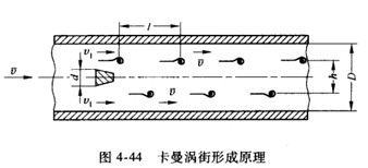 注意:式(4一108)推導(dǎo)的前提是渦街穩(wěn)定,即滿足h/l=0.281,它適合于任何形狀的漩渦發(fā)生體。