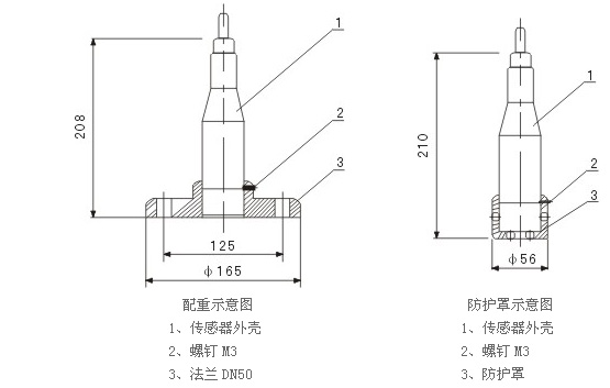 在測(cè)量流動(dòng)性較大的介質(zhì)時(shí),為防止傳感器劇烈擺動(dòng),用戶可選用配重附件,以起到穩(wěn)定傳感器的作用。配重以法蘭形式提供(DN50、PN4.0MPa、GB116.7-88),用戶可以用螺栓將其固定于工藝設(shè)施。